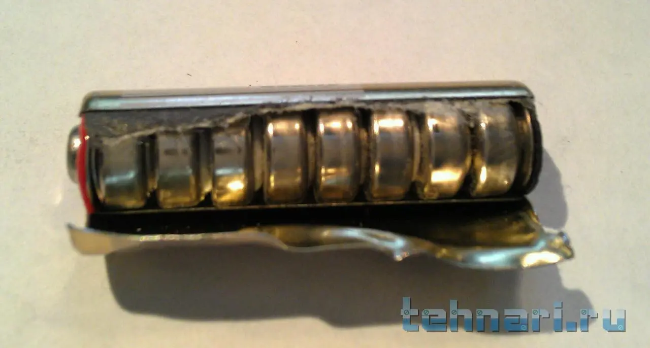 Если из 8 элементов (СЦ-21) попадётся хотя бы один дохлый, батарейка работать не будет.
