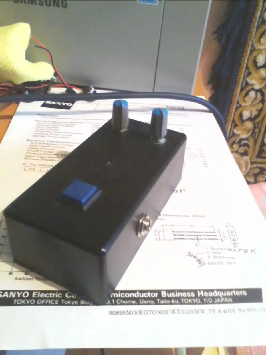 Он сделан на одном ОУ 741. Диоды любые кремниевые (Например:1N4148 или КД221А), у меня стоят какие-то советские, маркировки незнаю. Кнопка нужна типа DPDT, но я такой не нашёл и использовал то что было в магазине(думаю заказать DPDT через интернет-магазин).