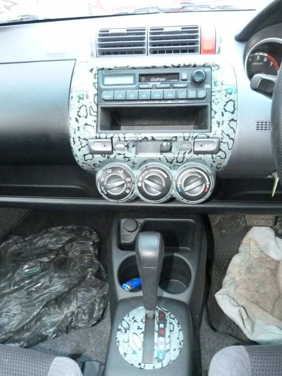 На фото вы видите что я сделал со вставками. У всех Фитов вставки простые-серые, ни каких там под дерево или карбон они(Японцы на заводе) не делают. Я тоже по началу хотел деревом покрыть, но жена моя попросила сделать под Анаконду. Думаю красиво получилось.