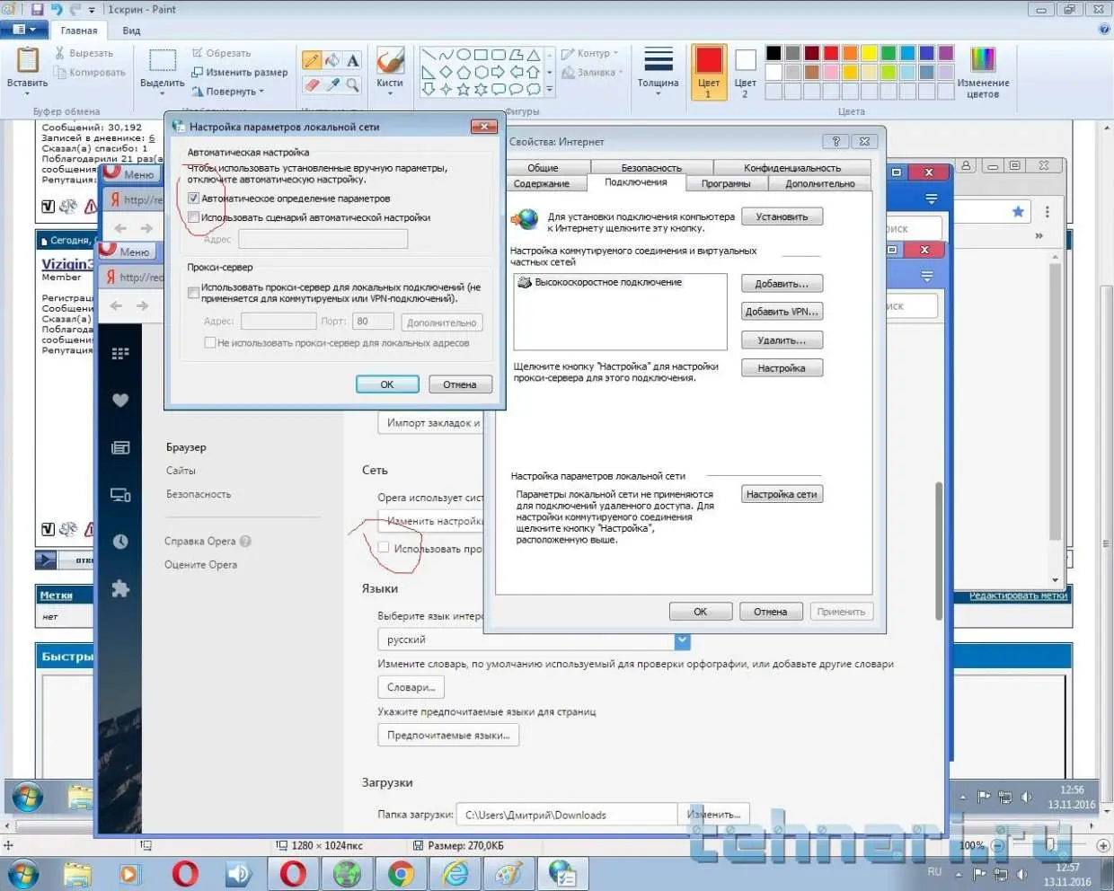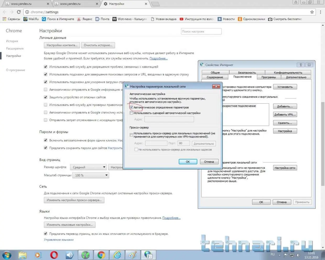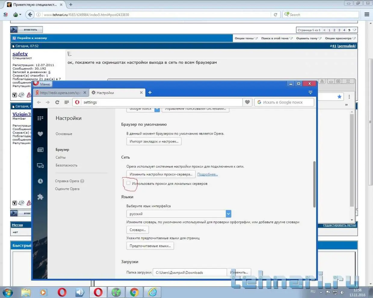 ок, покажите на скриншотах настройки выхода в сеть по всем браузерам