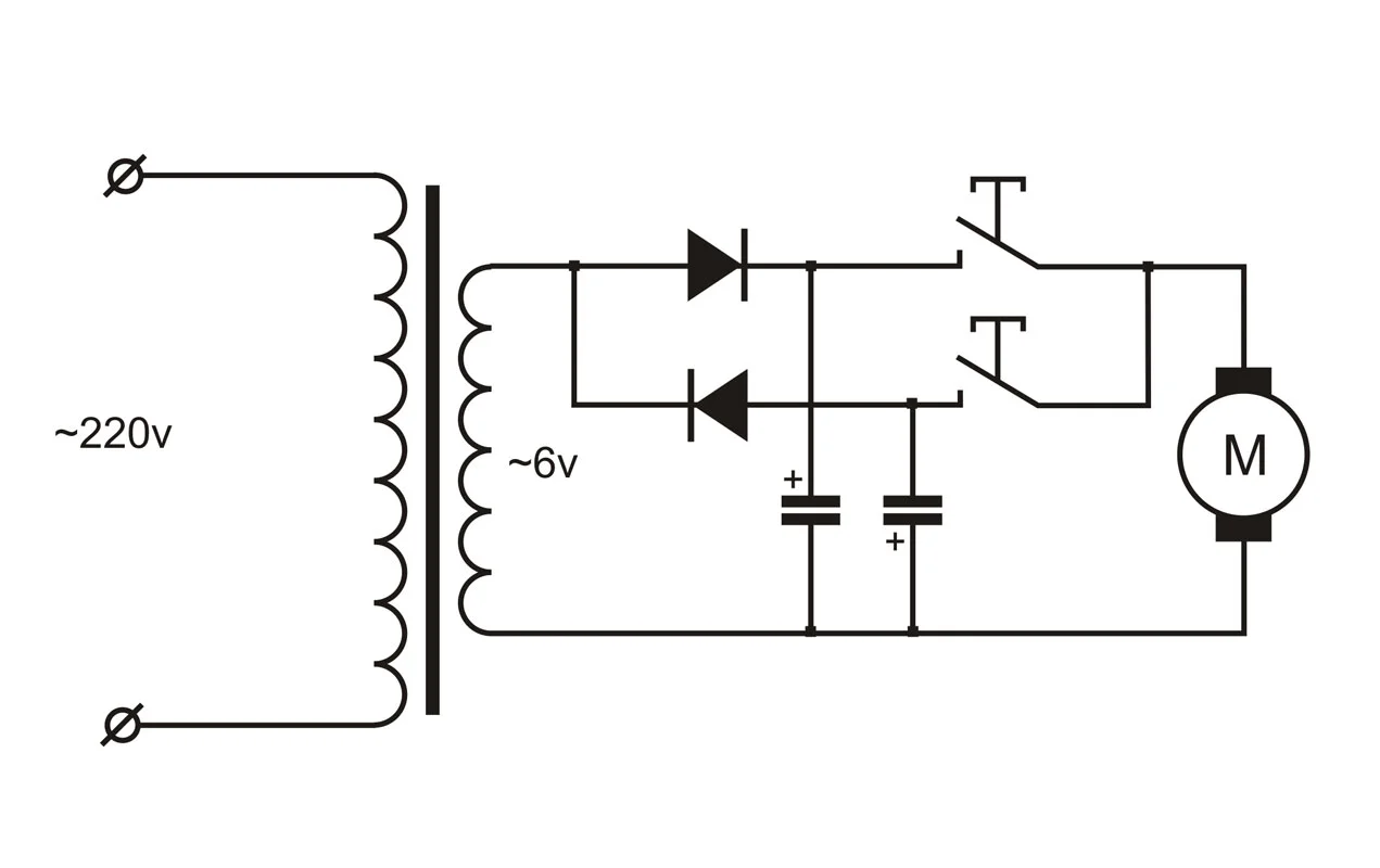 вообщем тема такая - есть электродвигатель, питание, и 2 кнопки.
