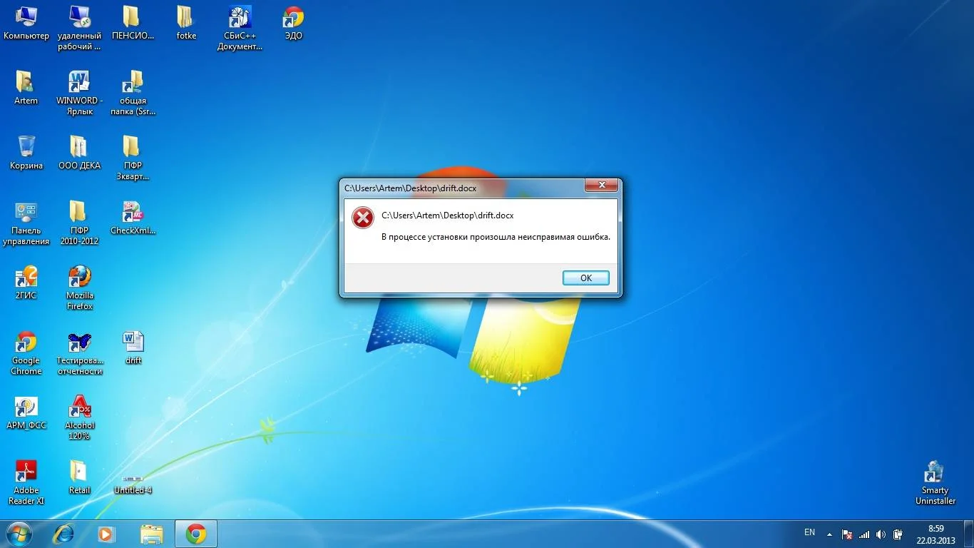 Офис на компе постоянно настраивается при открывании фалов и причем привсем в конце он выдает тупо ошибку без кода без названия......