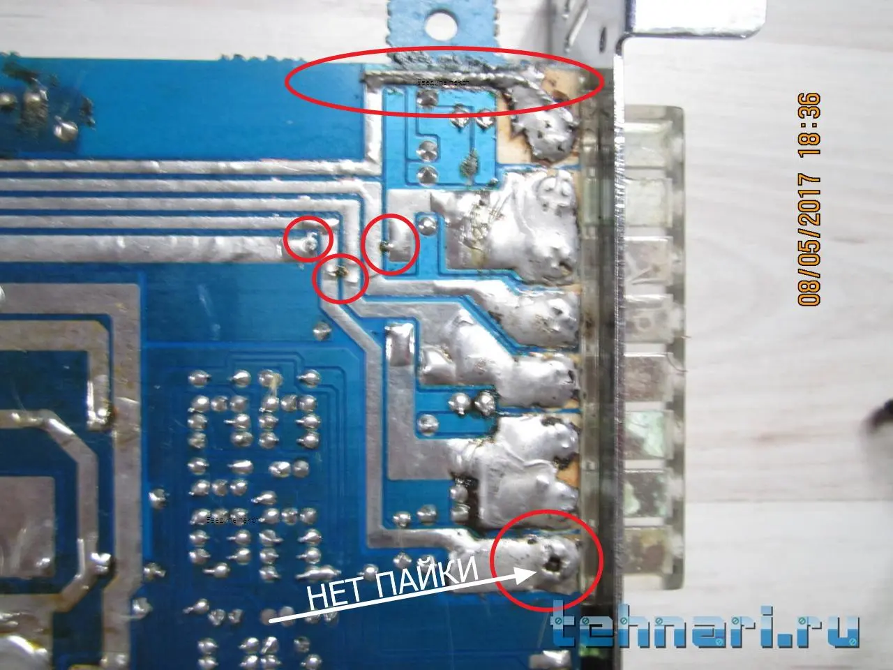 Проверьте выделенные места. В одном вероятнее всего нет контакта, в остальных возможны замыкания. Пайщику в руки больше не давайте паяльник на ответственных местах. Это как начинающий сварщик- сперва один сёр. Сварочного шва нет.