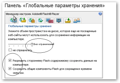 и вот тут - Adobe — Flash Player: диспетчер параметров — Панель Глобальные параметры хранения