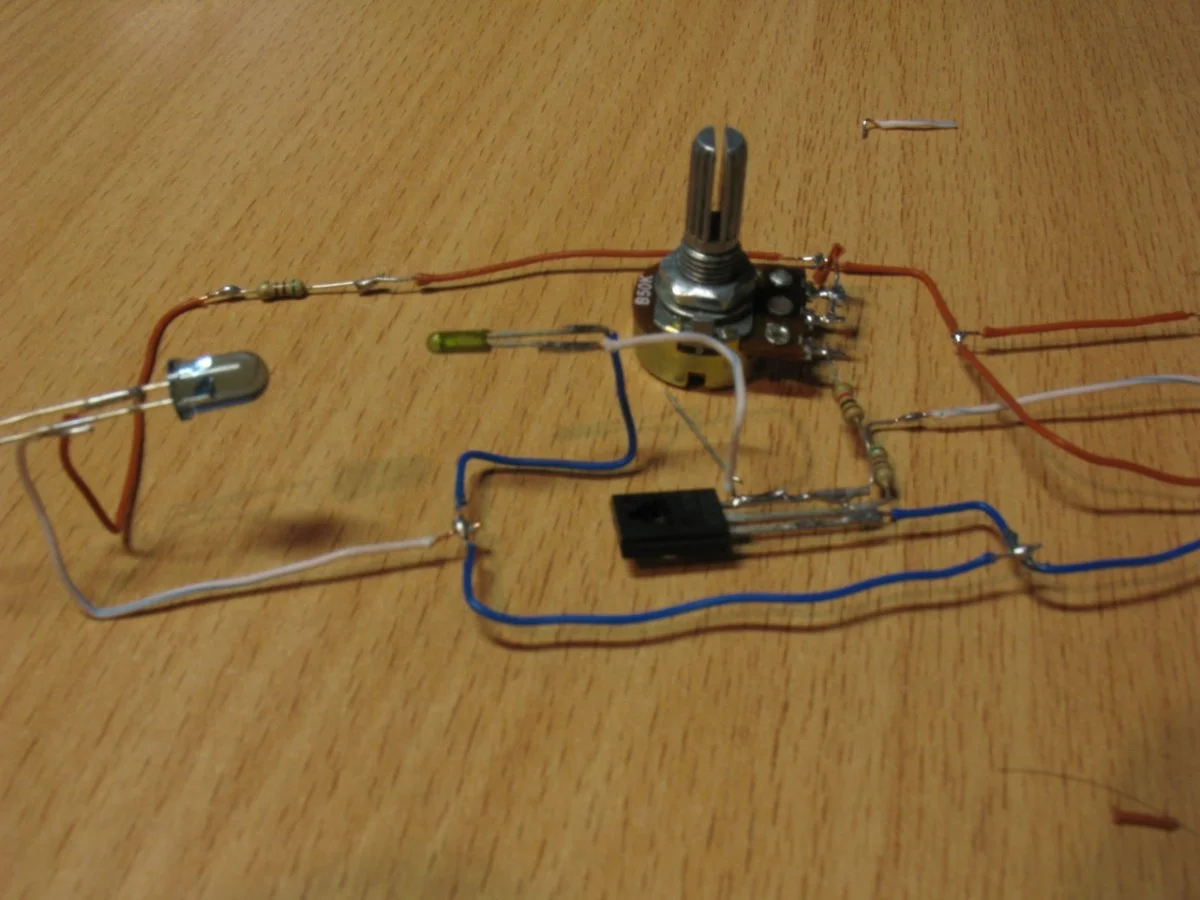 1 Установите фото и свето диоды друг против друга(можно накрыть их коробкой)
