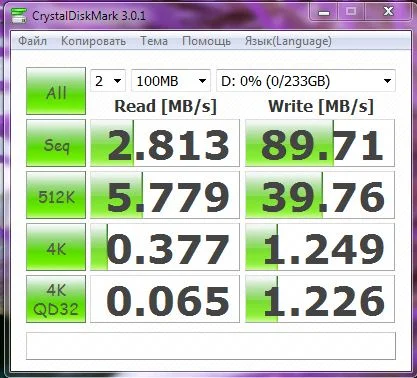 виктория и другие показывают нормальную скорость записи и очень низкую скорость чтения