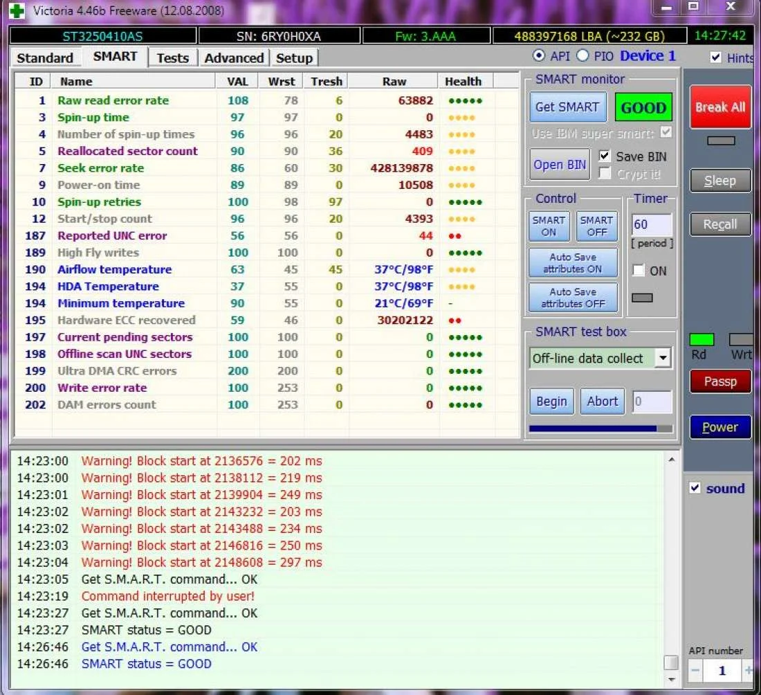 Столкнулся с интересной похоже неисправностью. Жёсткий seagate barracuda 7200.10 ST3250410AS НАЧАЛ ТОРМОЗИТЬ, ну и как следствие комп конкретно тормозит. Что интересно программы виктория и другие показывают нормальную скорость записи и очень низкую скорость чтения HDD. По всему интернету не могу найти похожую неисправность. Жёсткий одинаково работает на разных компах. Не пойму металлолом или нет.