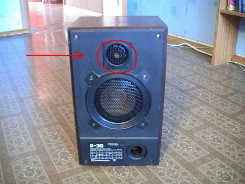 у меня есть две колонки S-30 советские. играют нормально, но на одной колонке верхний маленький динамик, который ВЧ воспроизводит, не работает,точнее он работает, но верхних в нем не слышно. из него идет ненасыщенный глухой звук.