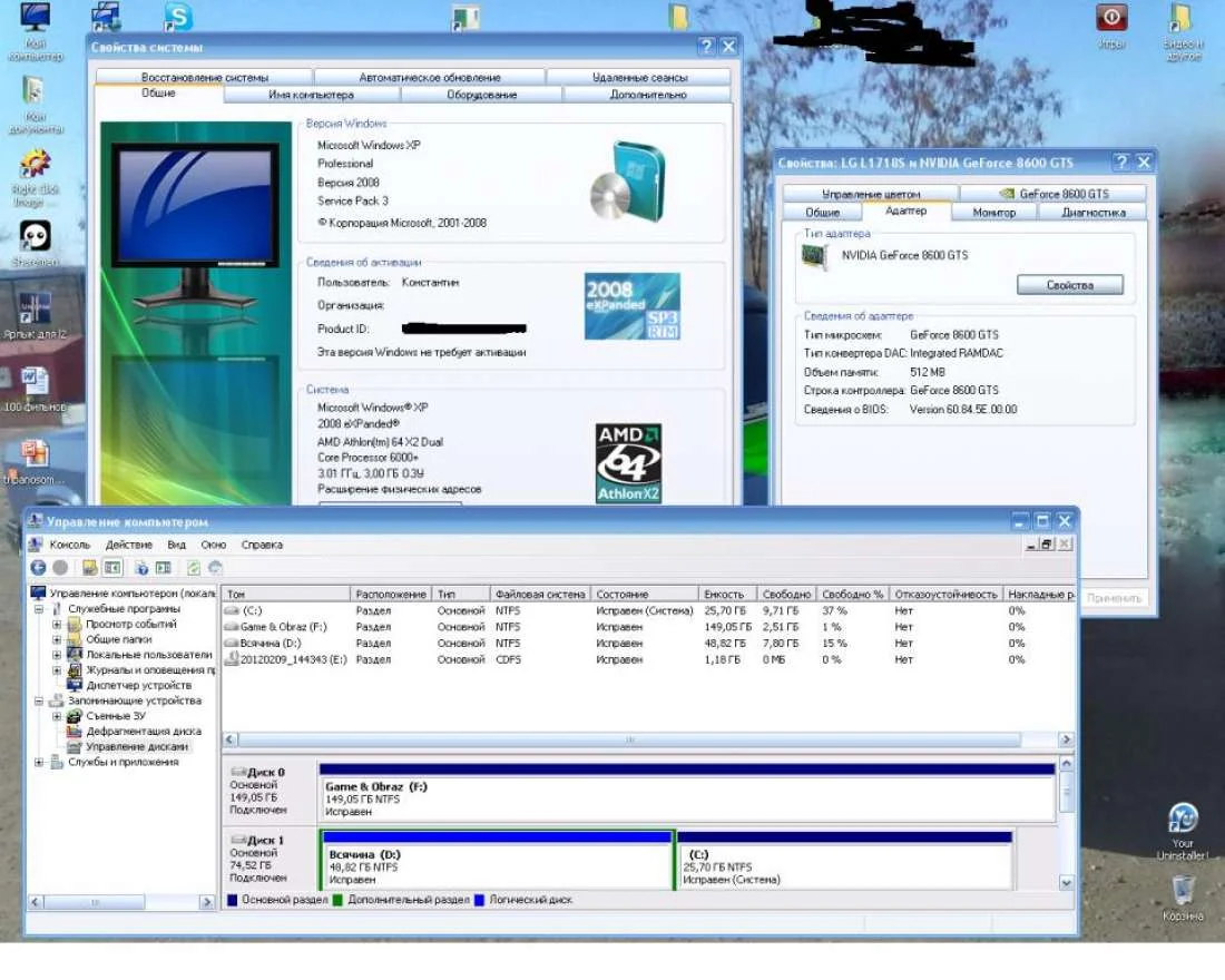 Кстате о системе. Винда ХР, Мама USUS m2n-e, проц AMD x64 6000, озу 3 гига, винт на 250, видюха NVIDIA geforce 8600GTS 512 MB