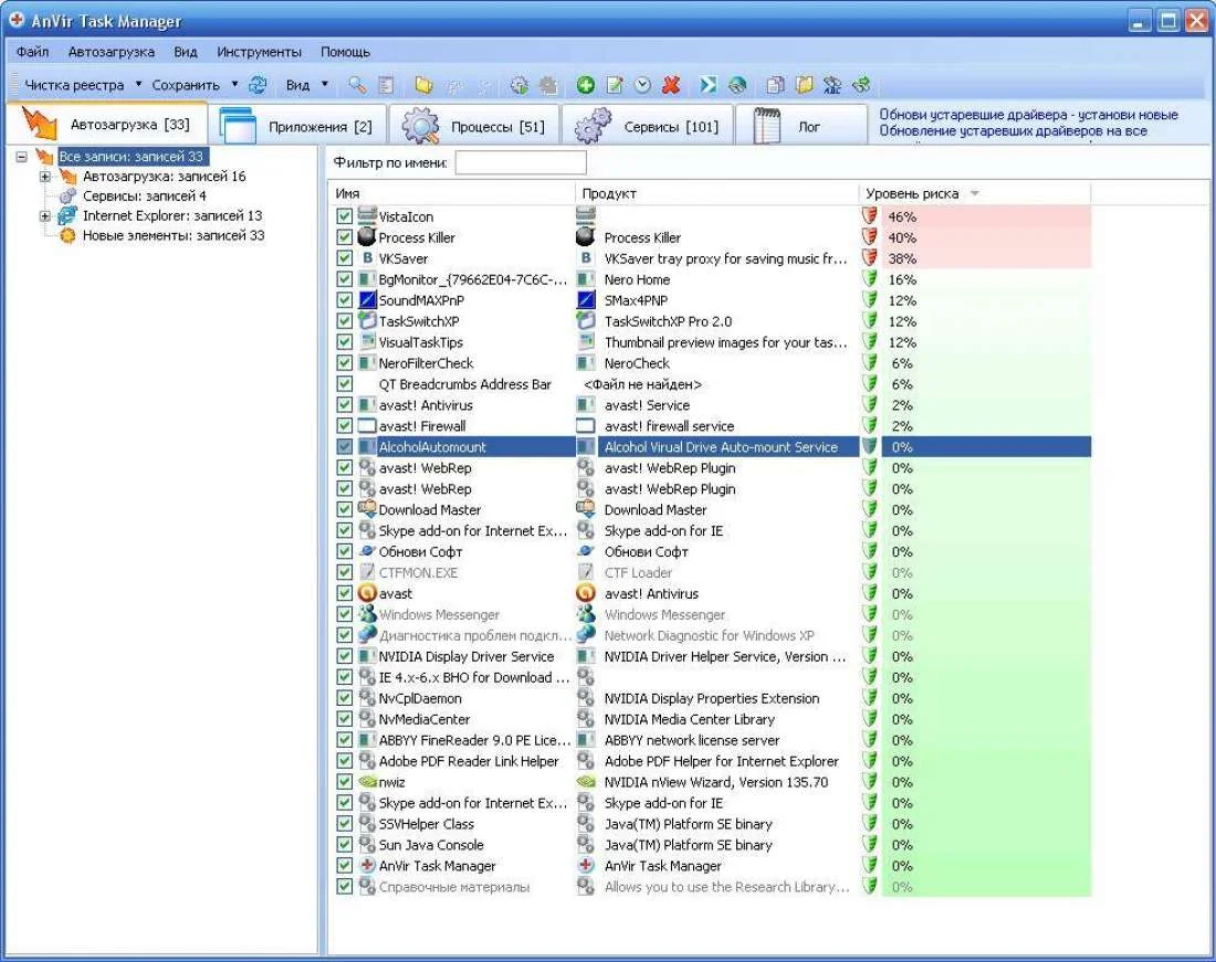 Абби, Адобе, медиацентр nV, Неро, Мессенджер, Скайповский аддон убить сразу.