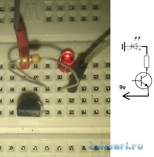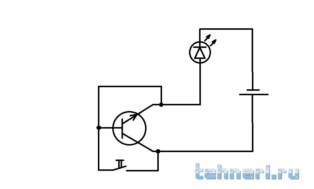 При нажатии на кнопку транзистор откроется и светодиод засветится!
