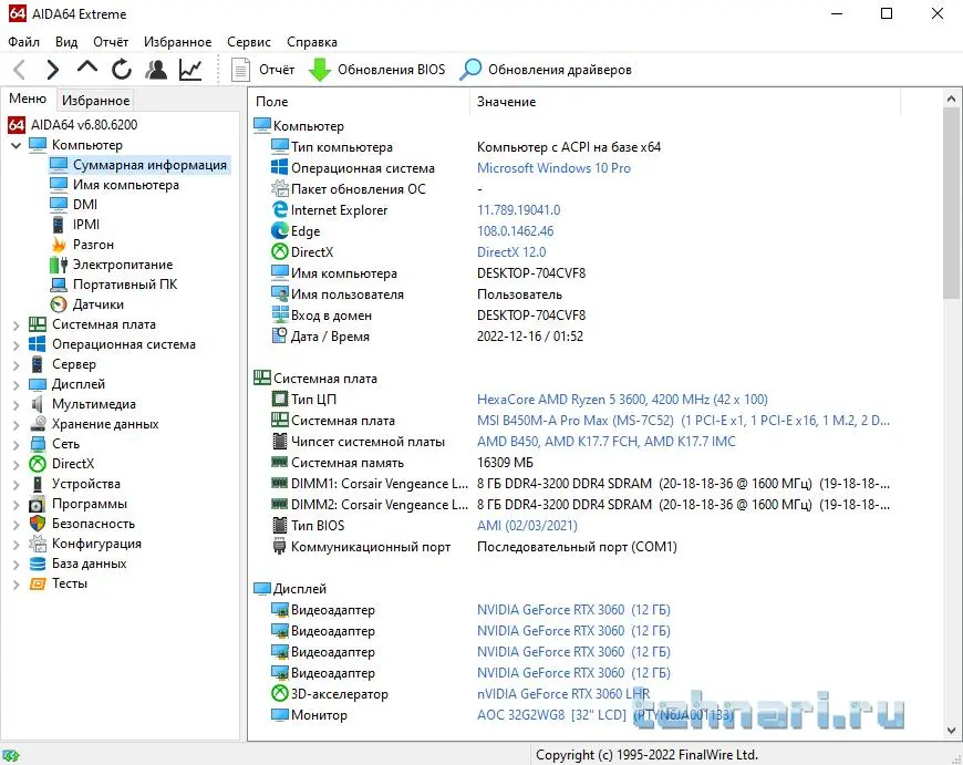 Видеокарта: NVIDIA RTX 3060 (12 гб) LHR
