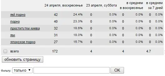 Вообще не понимаю что за бред происходит, с поисковиков идут запросы на порно тему (сМ. Скрин) идут переходы с порно сайтов, сайт игровой и ничего подобного на него идти не должно, от куда вся эта фигня и как бороться?