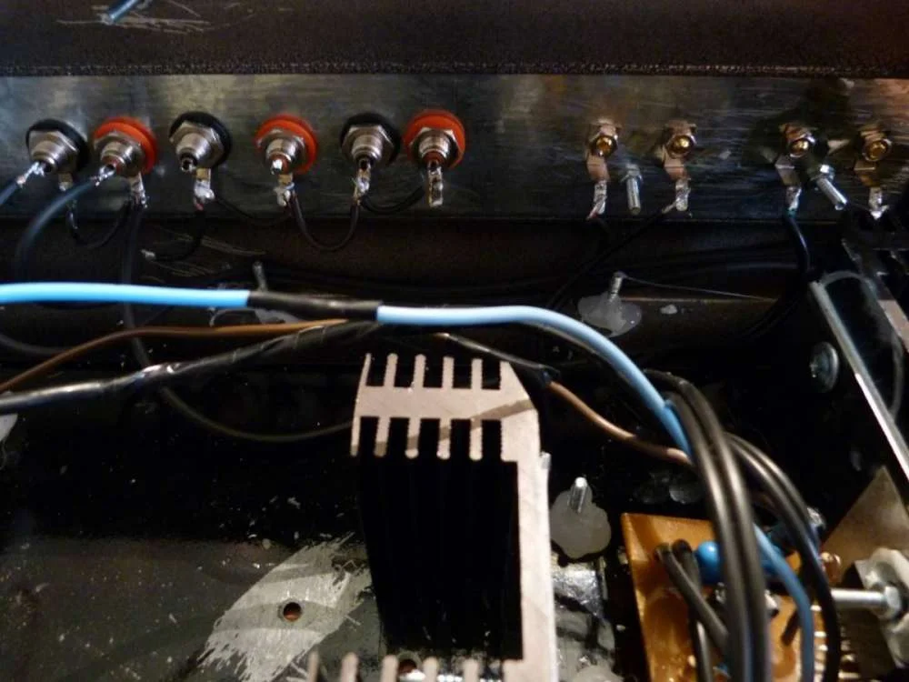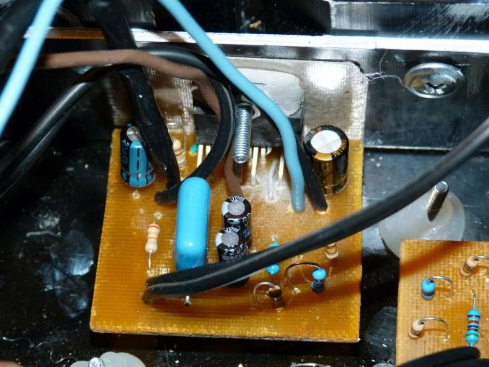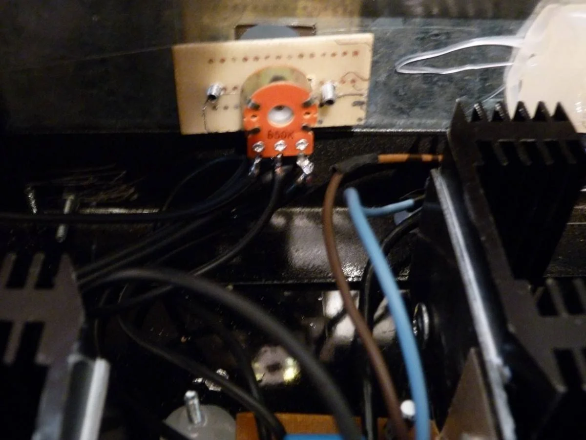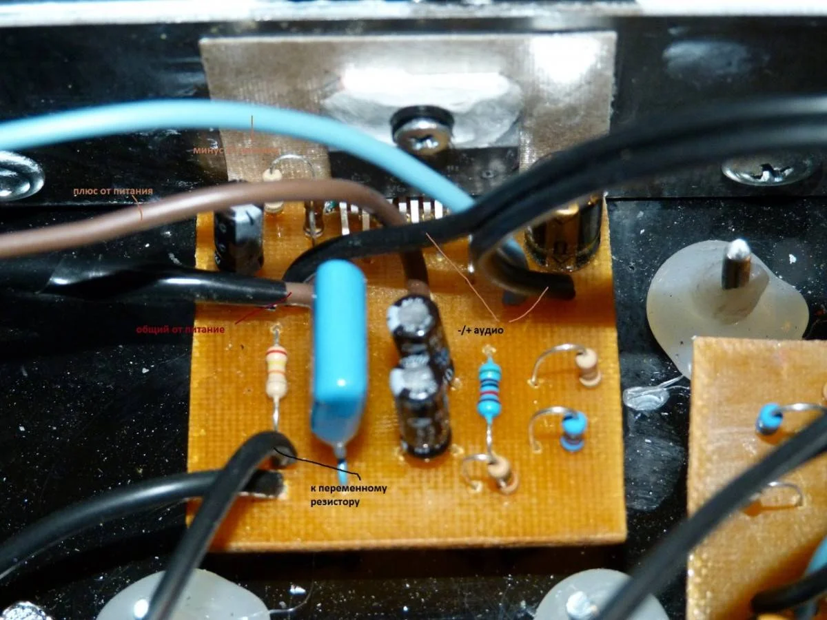 Провода на вход и от платы к переменному резистору припаял экранированным проводом.