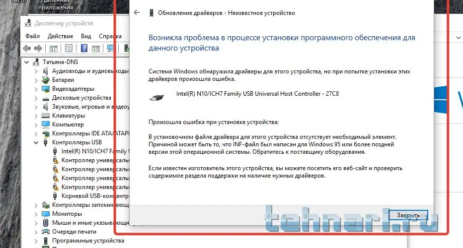 Здравствуйте. Не работают USB порты на нетбуке с windows 10. При попытке обновить драйвера показывает сообщение о том что не хватает INF файла либо он есть но для другой версии windows написан, так же пробовал программу от intel для установки драйверов, и некоторые другие утилиты с драйверами которые совместимы с windows 10.Сброс системы так же не помог, пробовал несколько раз.