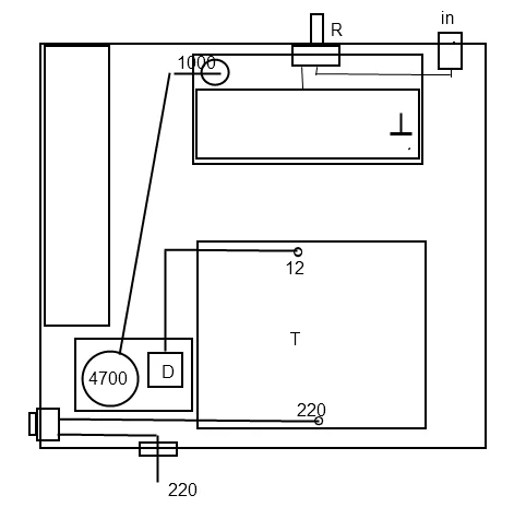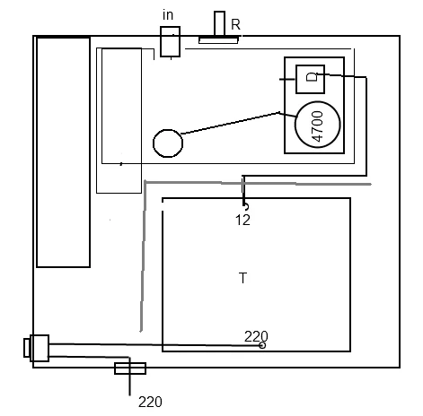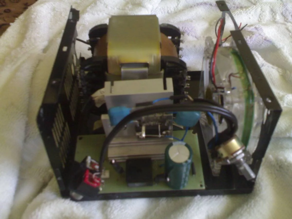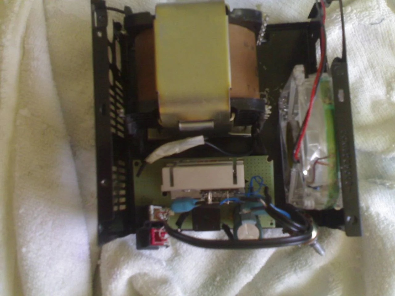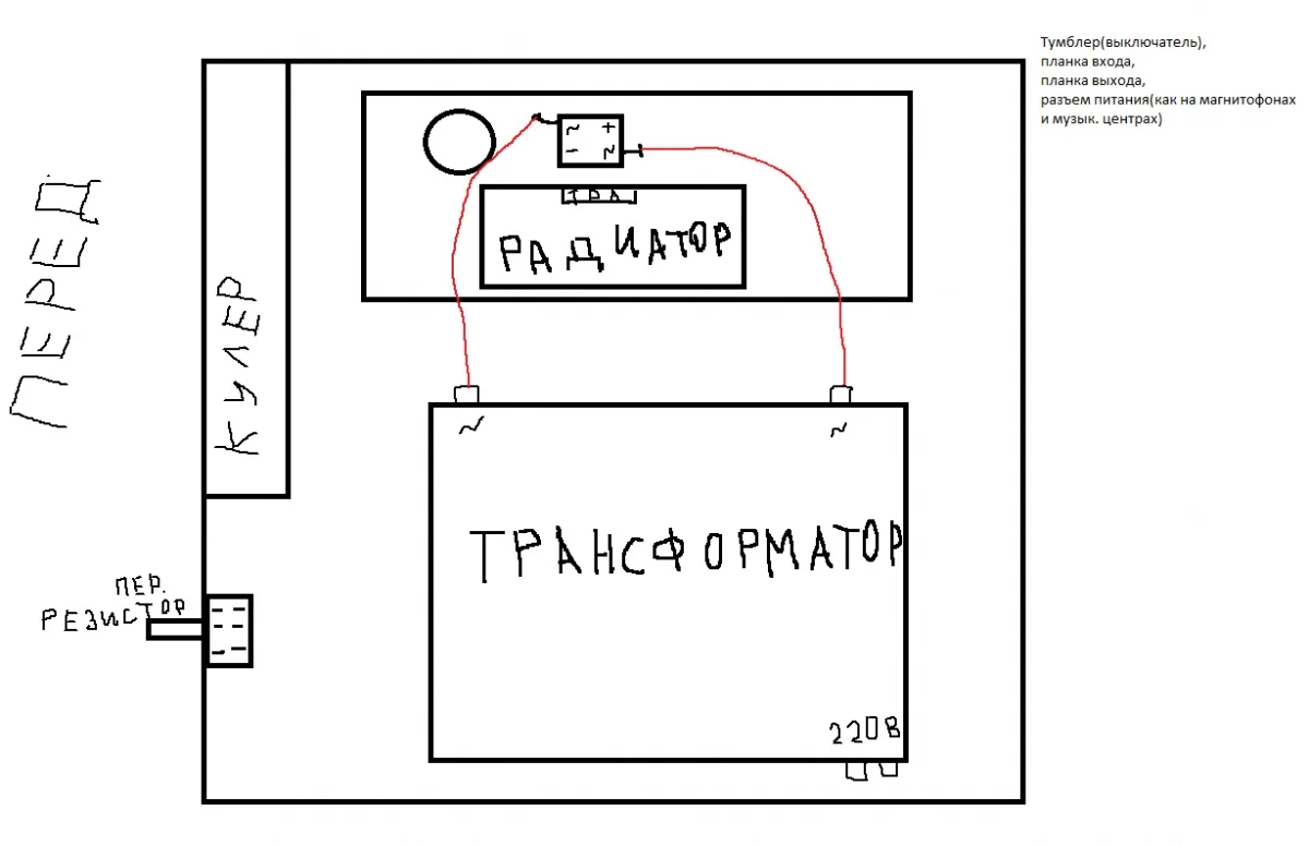 Корпус у меня от блока питания ПК.Задействованы передняя и задняя стенки - спереди располагается кулер на 80мм и переменный резистор.Ближе к краю внутри БП расположен трансформатор...Мне нужны ваши предложения по размещению компонентов внутри и снаружи корпуса и желательно пути проводов))))Буду очень признателен...