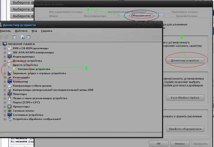 не понял,что там в оборудование???у меня в оборудование нет устройст с жёлтым знаком!!!