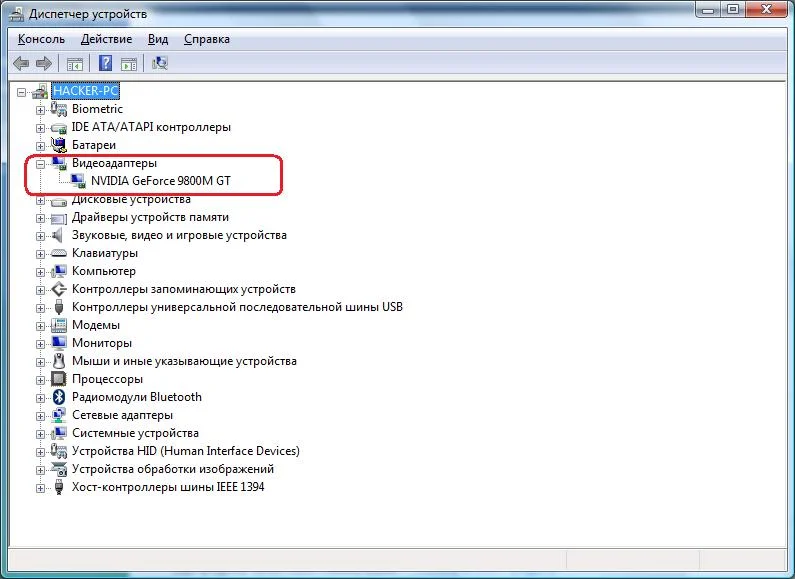 В диспетчере устройств.