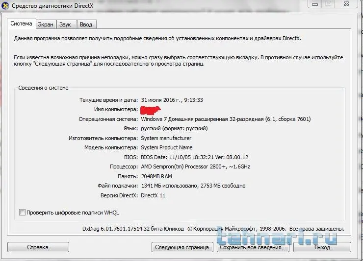 нужно открыть средства диагностики directx