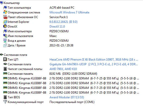 Подключили новый монитор, всё прекрасно, ну просто всё отлично! Проблема: при включении ПК, комп не подает признаки жизни или же начнется запуск системы (секунды 5) и отключается. Включается когда питание переключишь тумблером раза 2, и продолжает как обычно работать. Если был запуск системы (5 сек) то просит выбрать в каком режиме зайти. В дальнейшей работе проблем нет. Только при включении. Помогите решить проблему, пока чего-нибудь не спалили. Во вложении конфигурация .