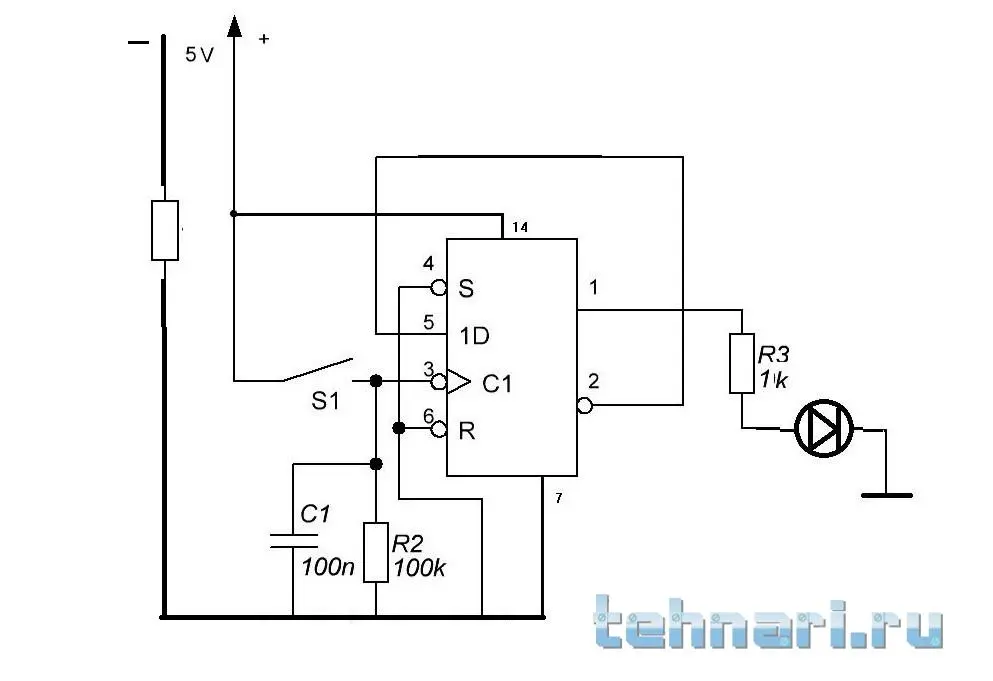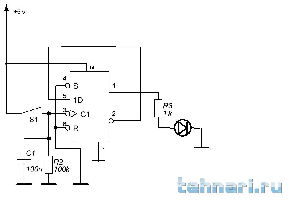 Здравствуйте уважаемые форумчане! Подскажите пожалуйста что я не так делаю. Собрал схему, микросхемак561тм2, а она (схема) не работает. При замыкании S1 светодиод - загорается, а при отпускании кнопки - гаснет. Я же правильно понимаю что, триггер должен сохранять свое состояние при замыкании и размыкании S1???Пробовал несколько разных микросхем, результат такой-же.
