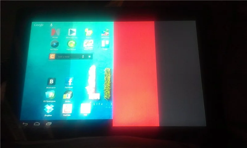 Уронил планшет в ванну (Asus Transformer Prime), после чего разобрал и полностью высушил. Работает в целом нормально, но есть проблема с экраном - половина экрана в цветных полосах, иногда они пропадают (особенно когда проигрывается видео), но изображение в этой части "прыгает" и размыто. Разъединение и подсоединение экрана заново не помогает. Тачскрин работает нормально.