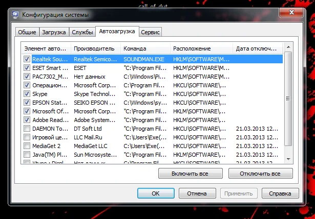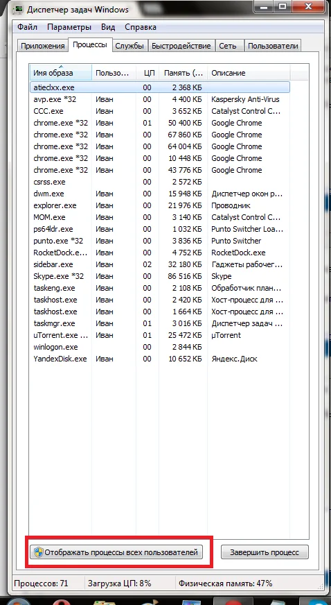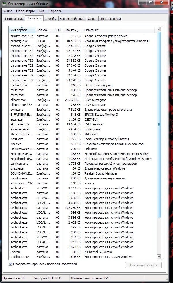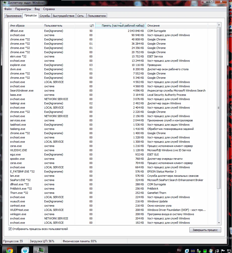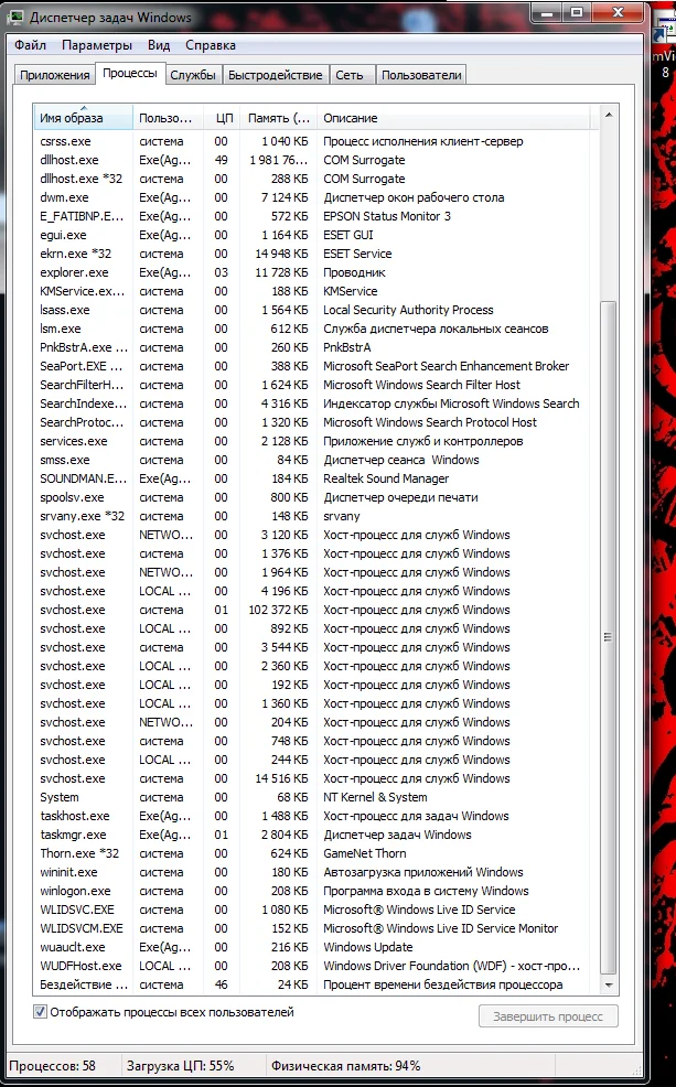 там из запущенных только NVIDIA, Sound Effect, Epson r270 и сам диспетчер задач