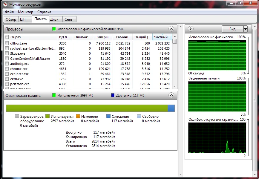скачал, после сканирования ни каких вирусов не было обнаружено, снял большую часть программ с авто запуска, после включения занято всего лишь 700-800мб, если запустить Mc офис или браузер то происходит "скачок" и уже становится занято 2.7гб, после это вылетает ошибка.