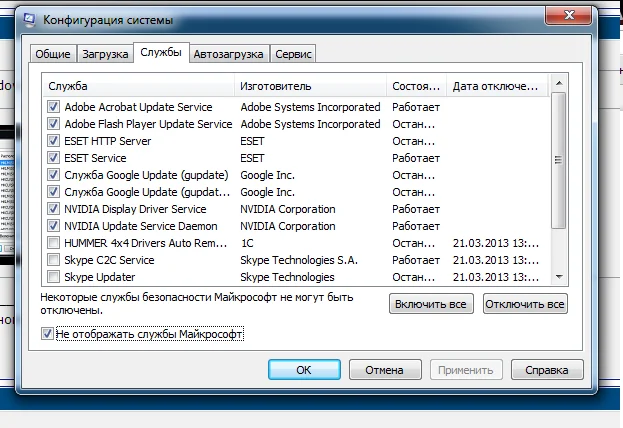 использую ОС Windows 7 Professional> Service Pack 1, выложил список в виде скрина.