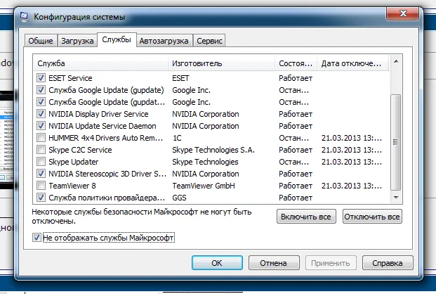 Судя по вашим скринам с экрана работает у вас гораздо больше чем вы перечислили, сделайте скрин запущенных процессов и тогда уже можно что то будет подсказать.