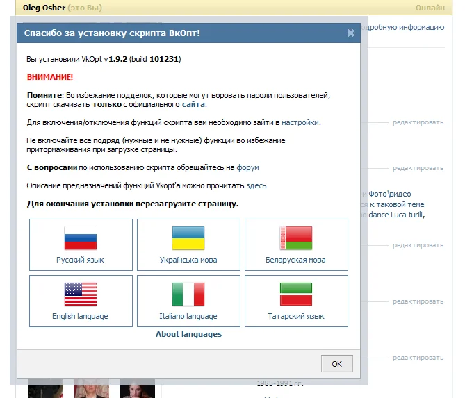 ВкОпт - улучшим ВКонтакт вместе! [ VKontakte Optimizer ] вот оф. сайт представителя скрипта..но кто знает может к тебе "прилетела" его подтелка.. да и сам "офф" скрипт несмотря на удобство мне доверия не внушает..