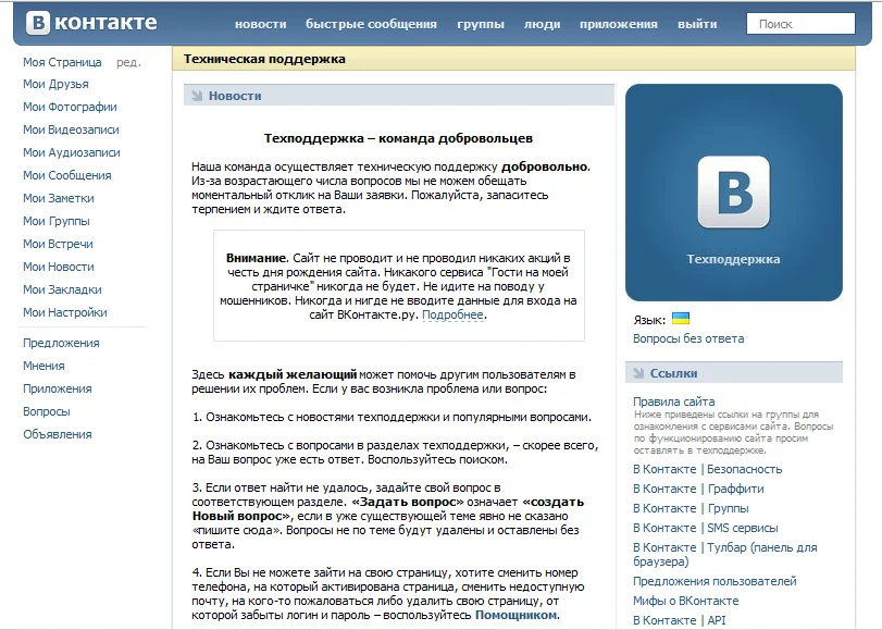 техническую поддержу контакта закрыли? интересно почему тогда не сам сайт уже?