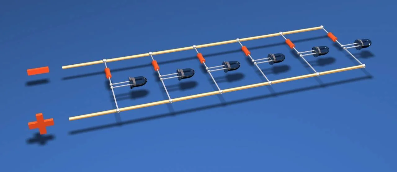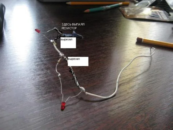 Подвох в том, что ток в этом участке цепи будет одинаковый и не имеет значения, где установлен резистор.Но ведь сначала идет через плюс ток а там резистора нету, получаеться падение напряжения произойдет на диоде или в чем то подвох?)