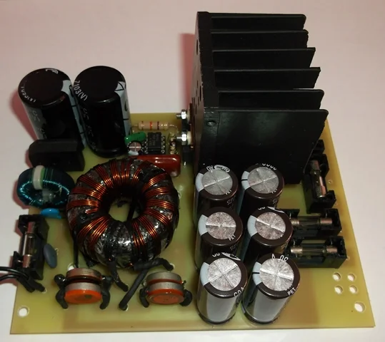 так же можно использовать данный блок питания как основу для лабораторного двуполярного блока питания +-45в,изначально плата подганялась под стандартное крепление в компьютерный блок питания вместо штатной платы.