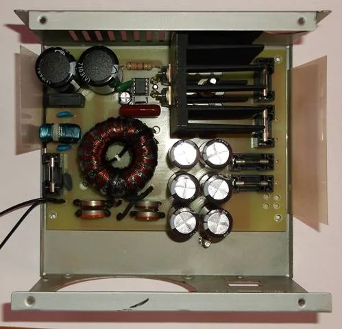 Установленной батареи конденсаторов достаточно для нормальной работы усилителя с выходной мощностью 2*100(150)Вт.