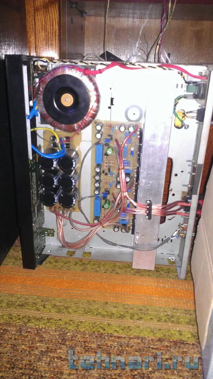 Радиатор площадью больше около 1500см2,пленка вся epcos MKP, транзисторы подобранны с разлетом 1%, в оос стоит ничикон ES 47*50, на оконечнике кондеры по питанию jamicon WL. Есть защита от постоянки, охлаждение активное постоянное.