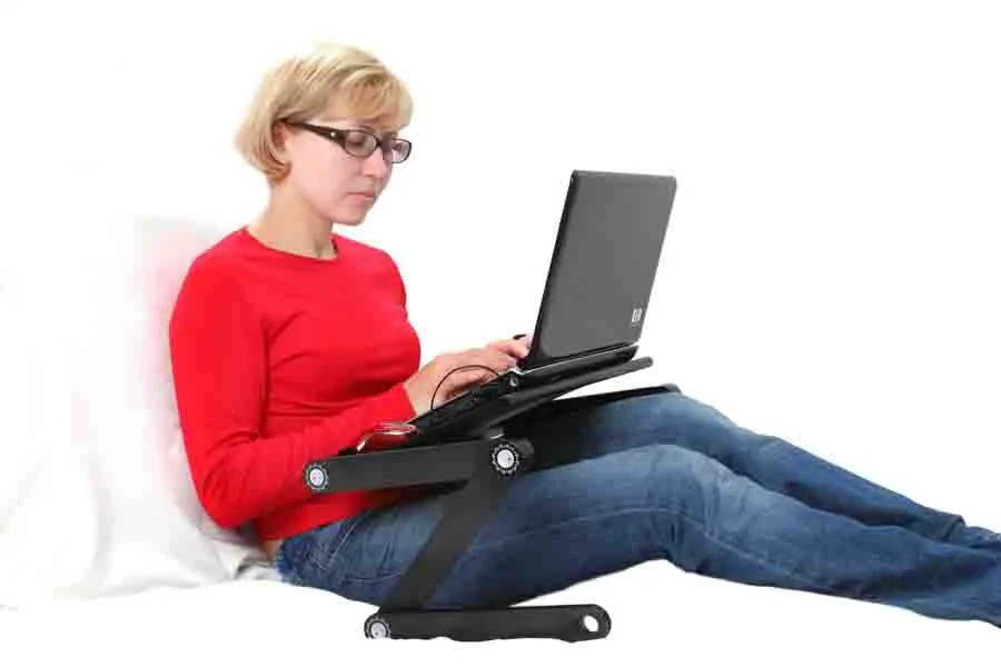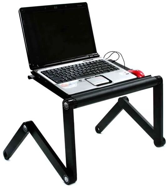 Сегменты ножек вращаются на 360 °. В местах вращения установлены надежные кнопочные фиксаторы, позволяющие фиксировать поворот сегментов ножек через каждые 5°. Это дает возможность моделировать множество вариантов стола и приспосабливать его для комфортной работы с ноутбуком практически в любых условиях. Столик легко раскладывается и быстро складывается.