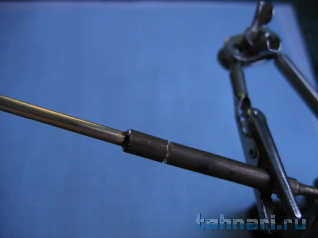 Антенну из латуни собственно ободрал до латуни. Верхнее колено было отломано. Пришлось изготовить и припаять набалдашник.