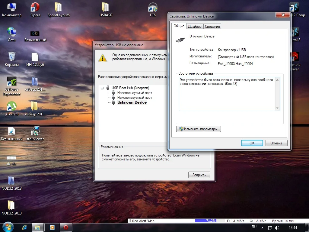 На ХР было такое пока я не отключил 21 вывод МК от + питания, потом нормально стал. А тут даже не предлагает что это UsbAsp, пробовал и обратно замыкать на + 21 вывод - толку нет.