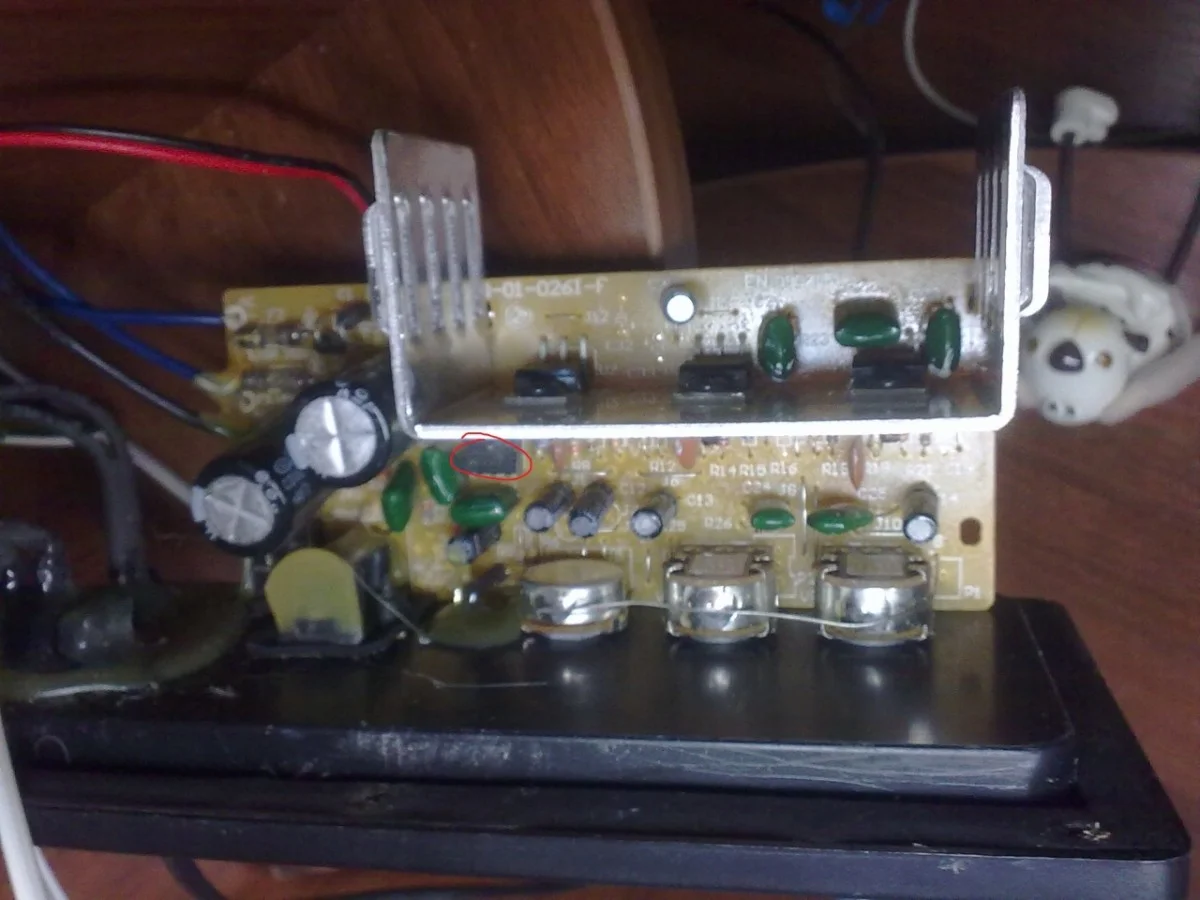 Врятли. Я ж ничего не перепаивал изначально. Дело было так. Все работало хорошо. вытащил схему из корпуса, заделал ее в стол. Включил - саб не работает