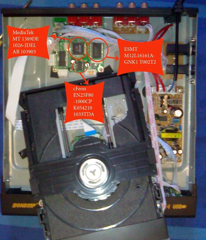 Сегодня разобрал проигрыватель. Оказалось все просто он на чипе MTK, в интернете много информации и программ для работы с прошивкой под этот чип.