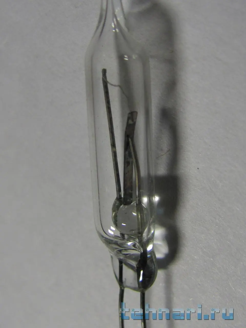 Так же заметил что одна из лампочек в центре к которой подходит черный провод от диода, внешне отличается от других, там внутри широкая металлическая пластинка. Может в ней дело?