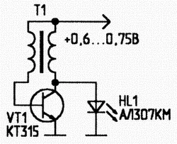 А можно попроще объяснить как этот генератор работает? От нечего делать собрал. Батарейка севшая 0.8 вольт, после генератора 0.56 но светодиод горит, почему?