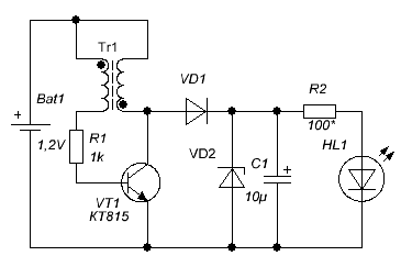 Простейший импульсный преобразователь для светодиода