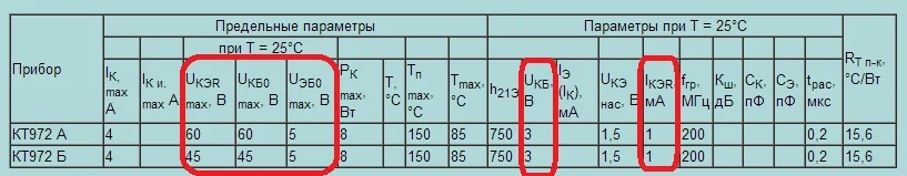 Кстати, а что в этой таблице характеристик КТ972 обозначают обведенные столбы?