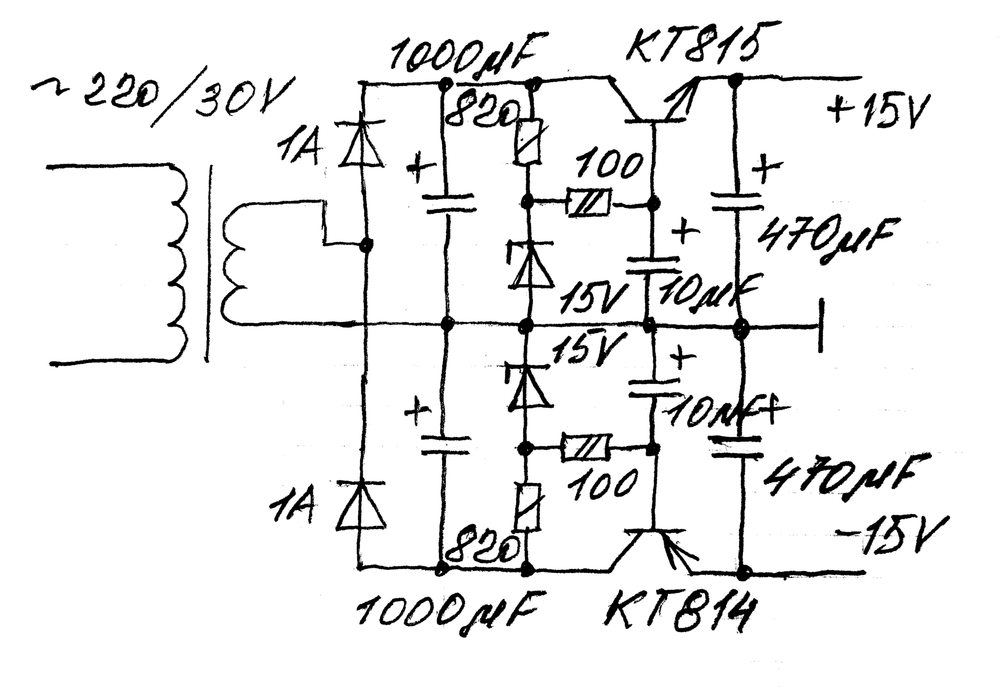 Дык в чем вопрос, ёмкостной делитель как ты говоришь, двухполярный параметрический стабилизатор (всего два транзистора), рисовать схему 5 минут ?...Focus 016, я имел в виду стабилизатор для двухполярного питания. ТО есть как минимум 2 транзистора, +- 15 вольт думаю будет достаточно...