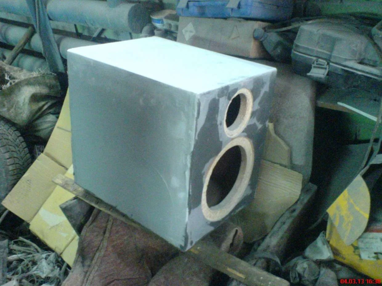 Затянулось у меня с корпусом саба. Сначала хотел просто лишь зашпатлевать отверстия саморезов и покрасить. Но заводская ламинированная поверхность плит оказалась недостаточно ровной и гладкой. Если уж делать то делать качественно. Все стороны корпуса сначала были полностью покрыты шпатлевкой с наполнителем из стекловолокна, поскольку идеальные плоскости такого размера шлифмашинкой сделать невозможно ,то все обрабатывается вручную. Сейчас наложен новый слой но уже финишной шпатлевки для пластика и шлифуется под ноль с помощью проявочного порошка, показывающего малейшие царапины и неровности. Вечером планируется покраска грунтом, металиком и слоями автолака. Есть мысль на металлик нанести какой нибудь рисунок(любой сложности) и потом покрыть лаком все сразу, но ничего хорошего не приходит в голову