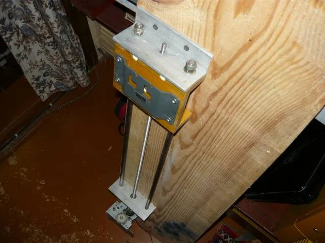 Нужно довести механизм до ума, закрепить подшипники и тд. Скорость зависит от оборотов двигателя, у М8 шаг 1 мм, длинна подьёма 420мм.