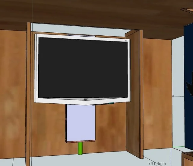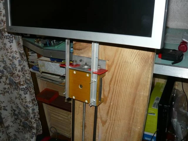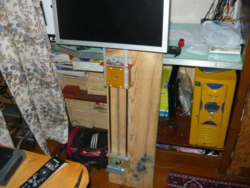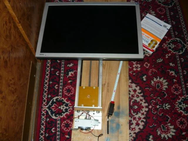 Да можно просто сзади на петельках и с колёсиками, монитор выезжая открывает крышку назад, а чтоб не поцарапался крышка с колёсиками, а если пружинки поставить то при опускании она сама закрываться будет:D Делов то на полчаса:D