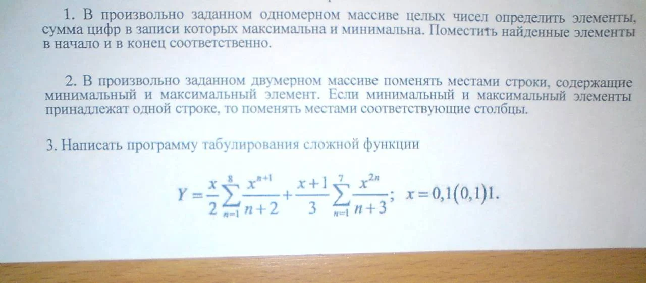Помогите пожалуйста написать в С++ три программы для расчетн.графич.задания.Пропала пара и преподаватель задала кучу заданий на зачет.Пока все сделала,теперь не успеваю написать последнию и первую,зашиваюсь уже.Вторую написала.Надо через день сдавать.ВРЕМЕНИ просто нет всеуже написать.хотя они не все сложные((((((